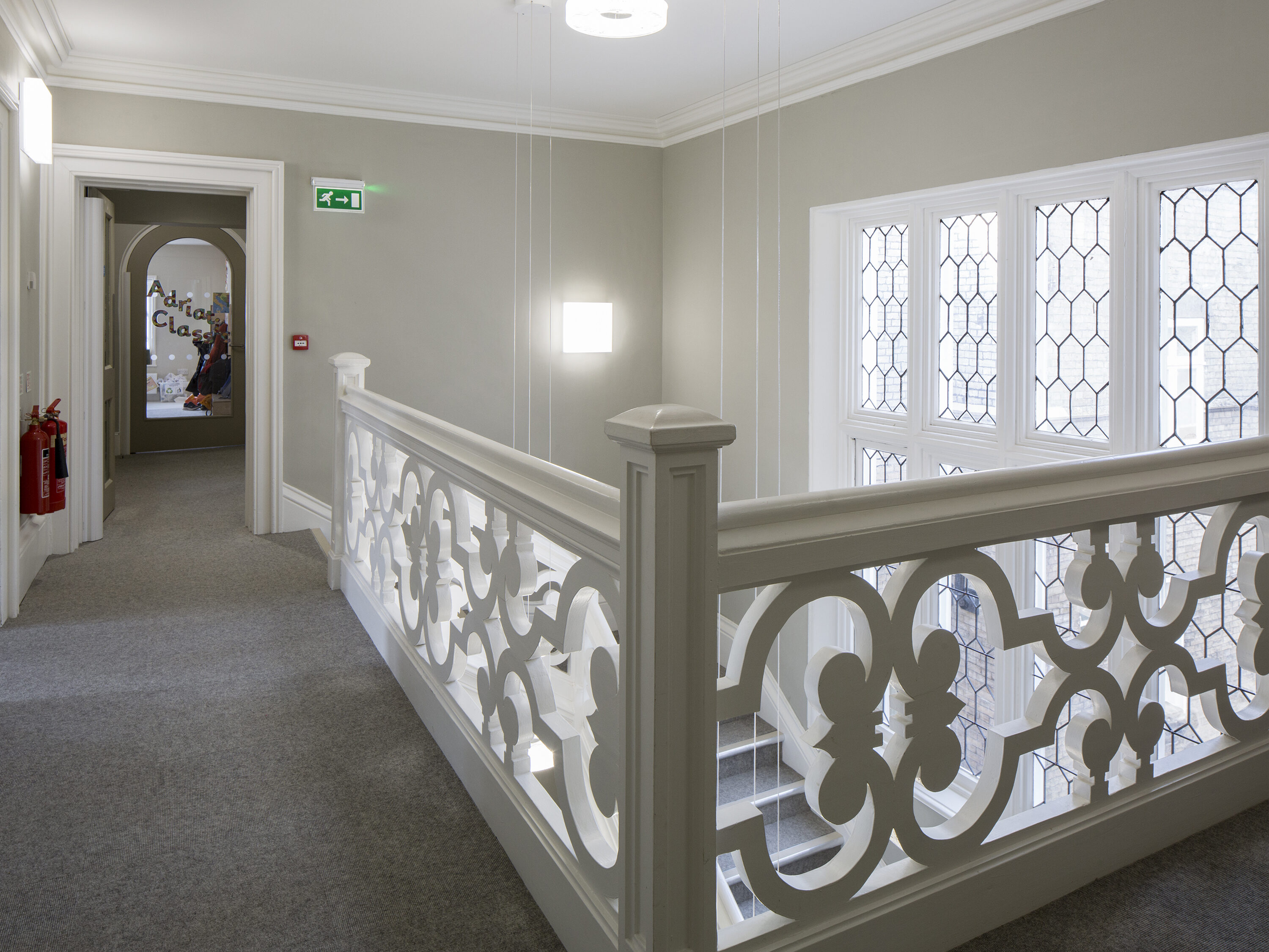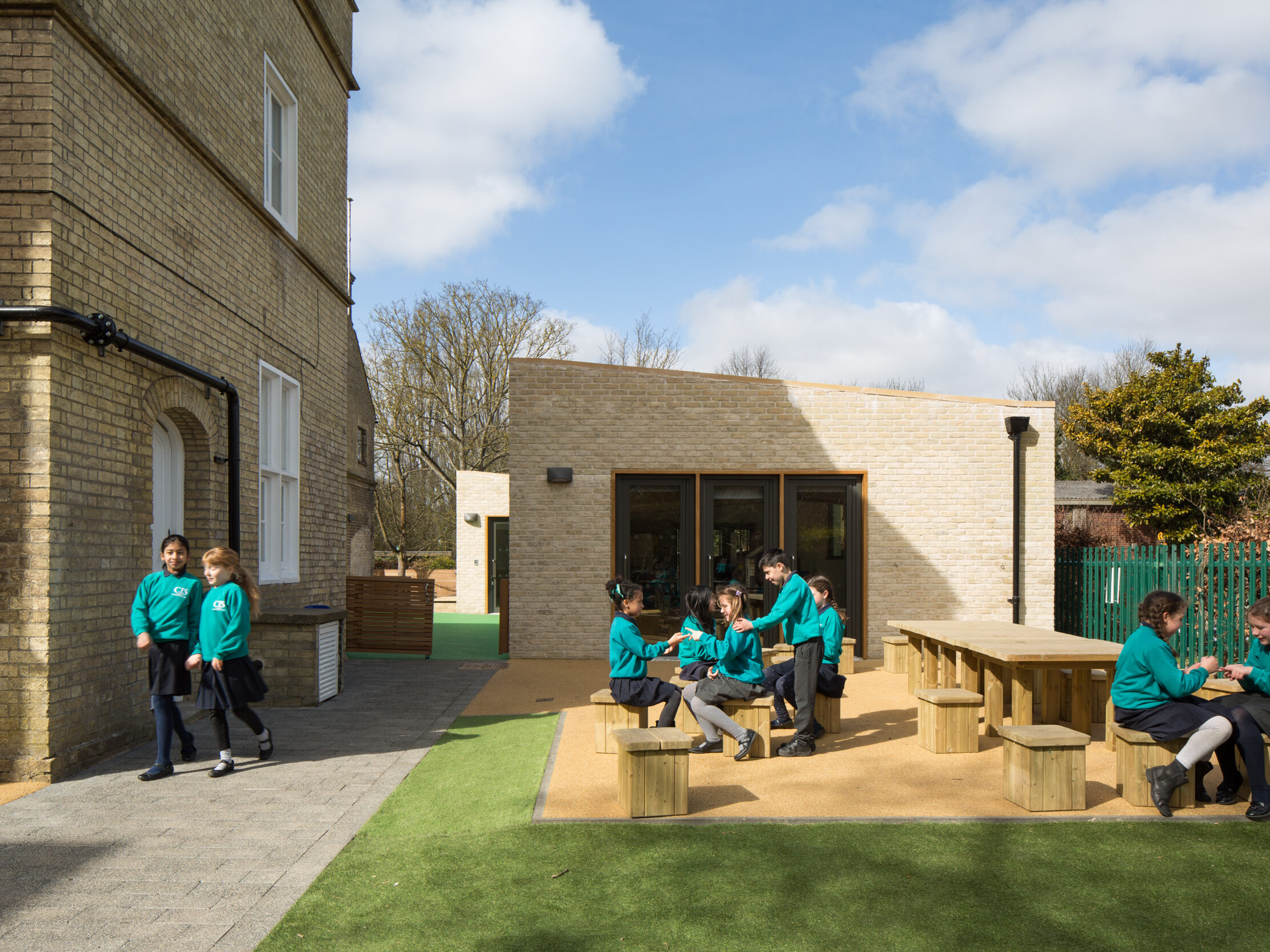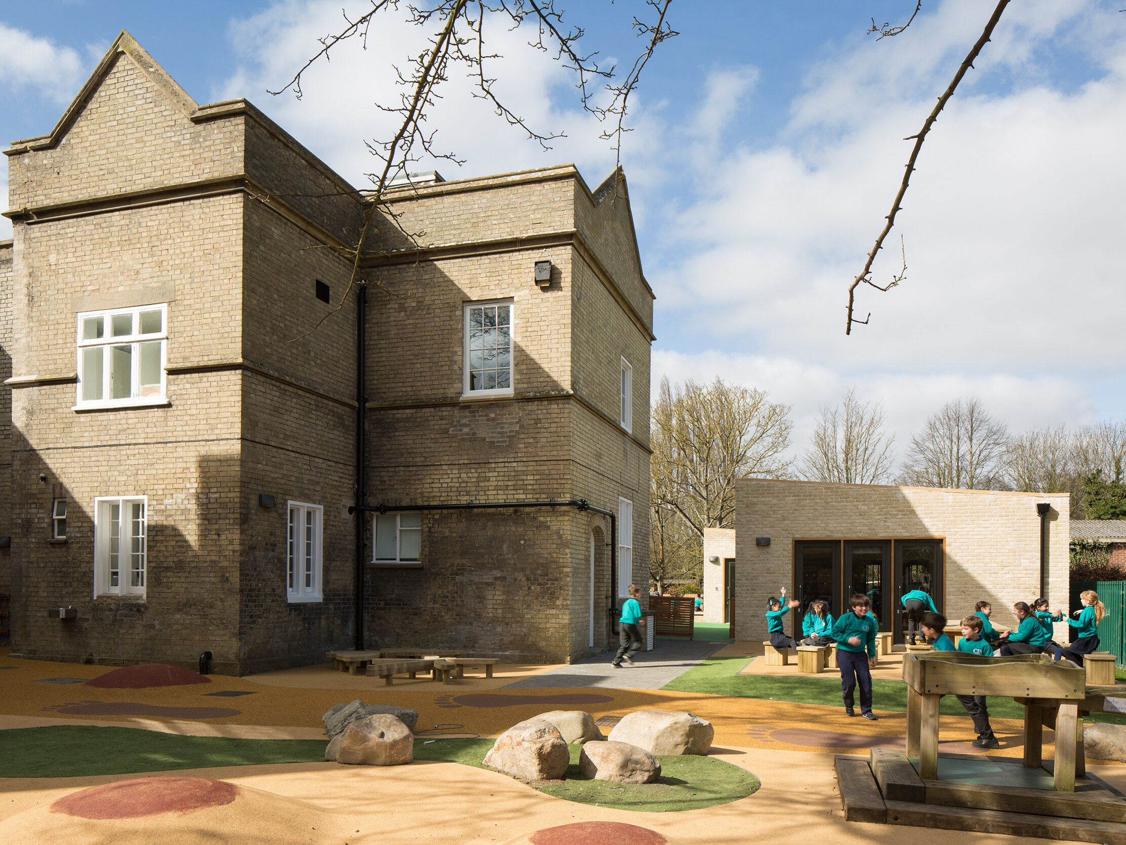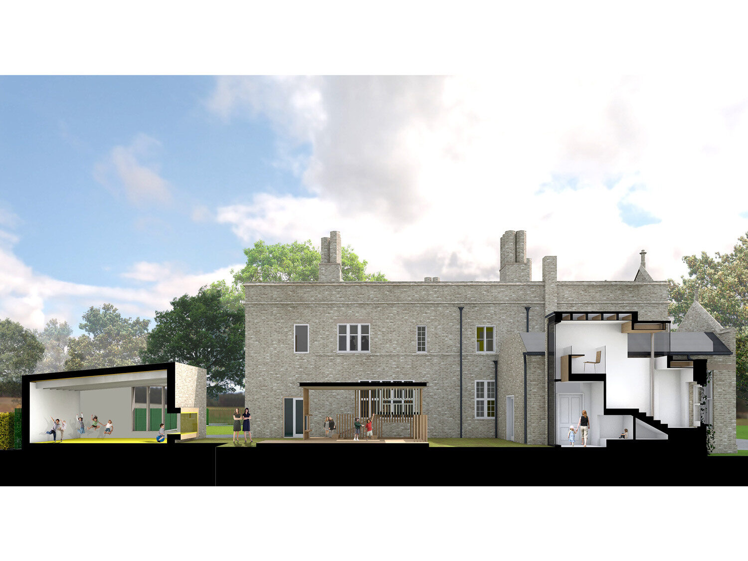 Situated in a Grade 2 listed Victorian Hall in the centre of Cherry Hinton Park, Cambridge, the project creates a new home for a Junior school. The scheme includes the refurbishment of the hall and adjacent cottage, with the construction of new-build elements to reorganise the school’s circulation and improve the value of the historic building in its parkland setting.