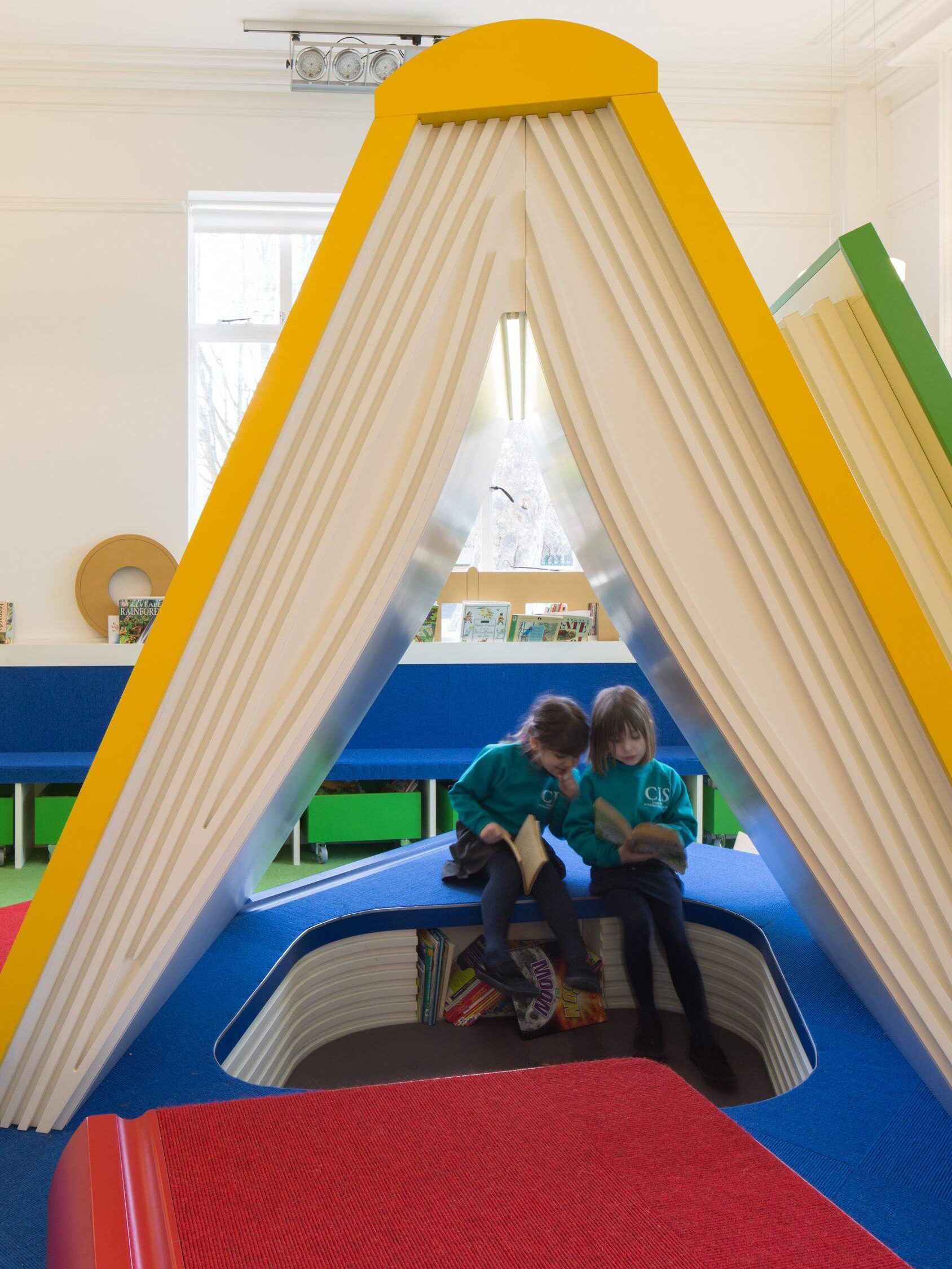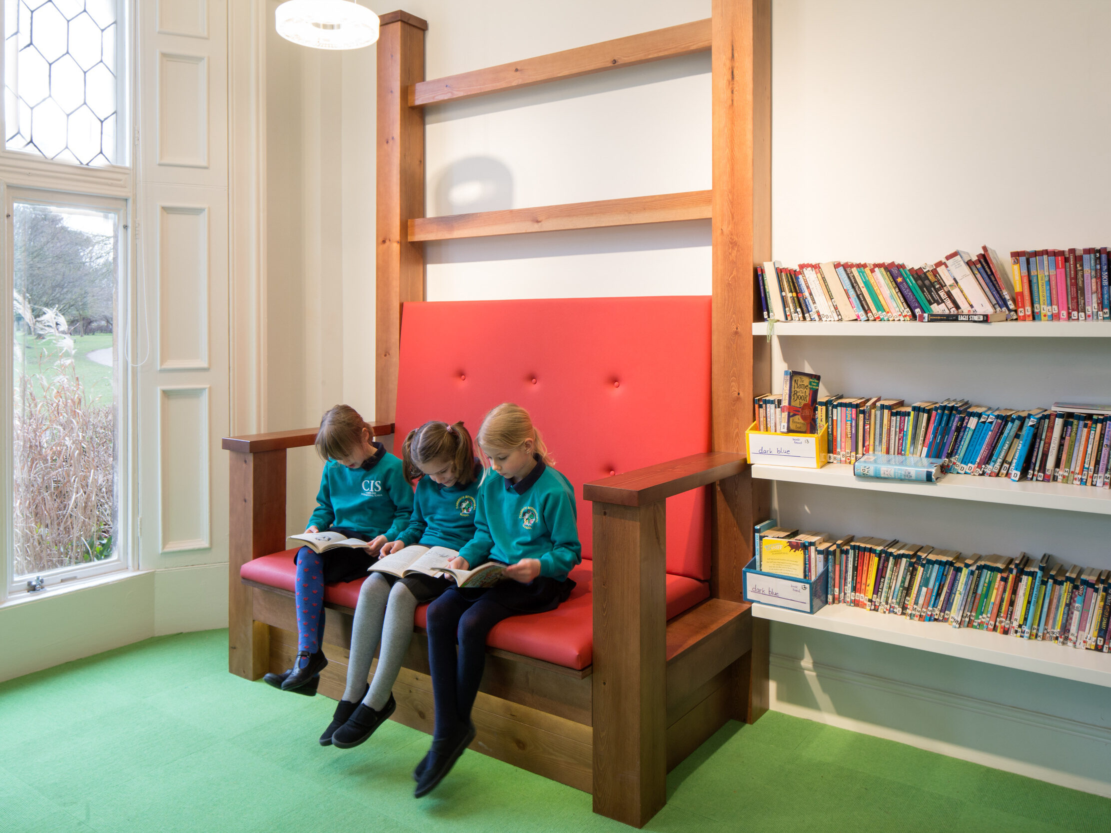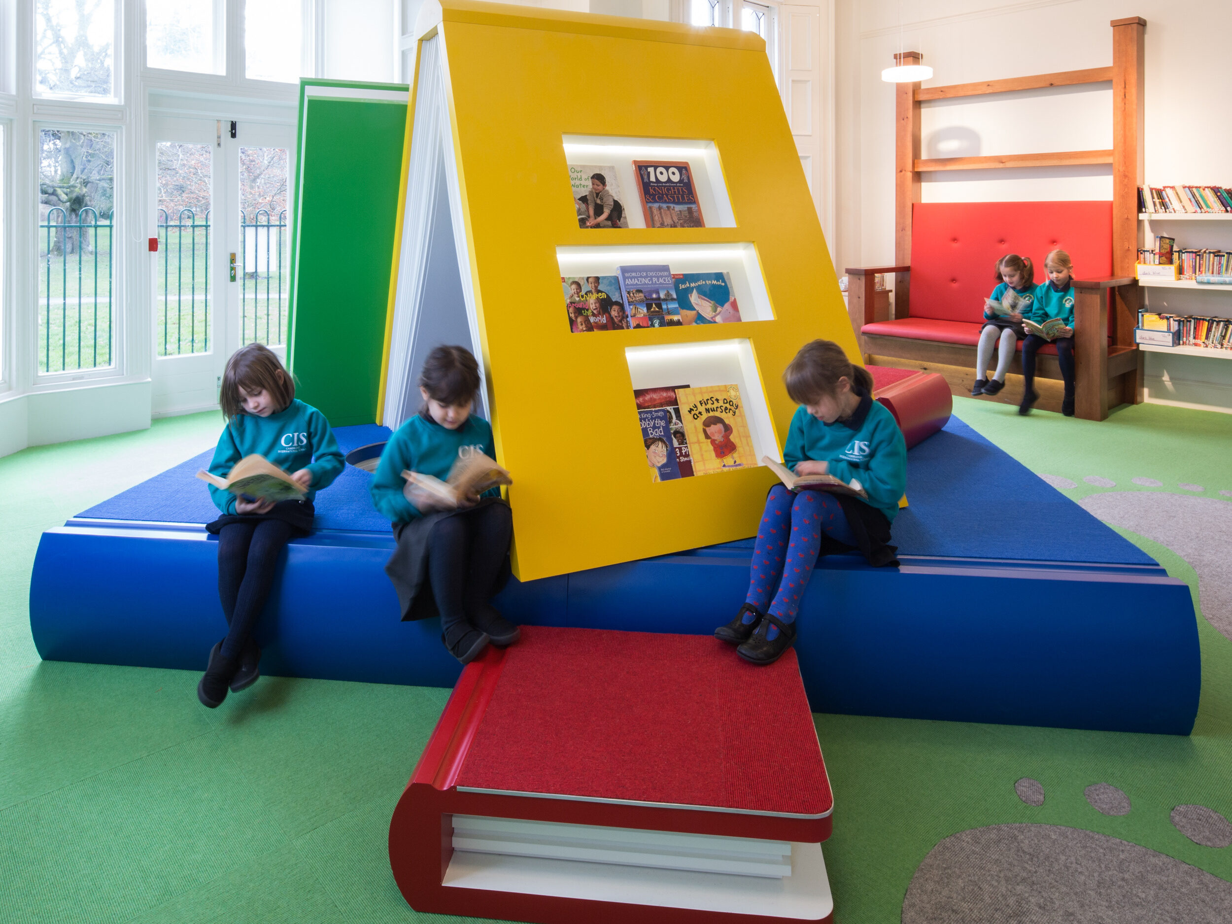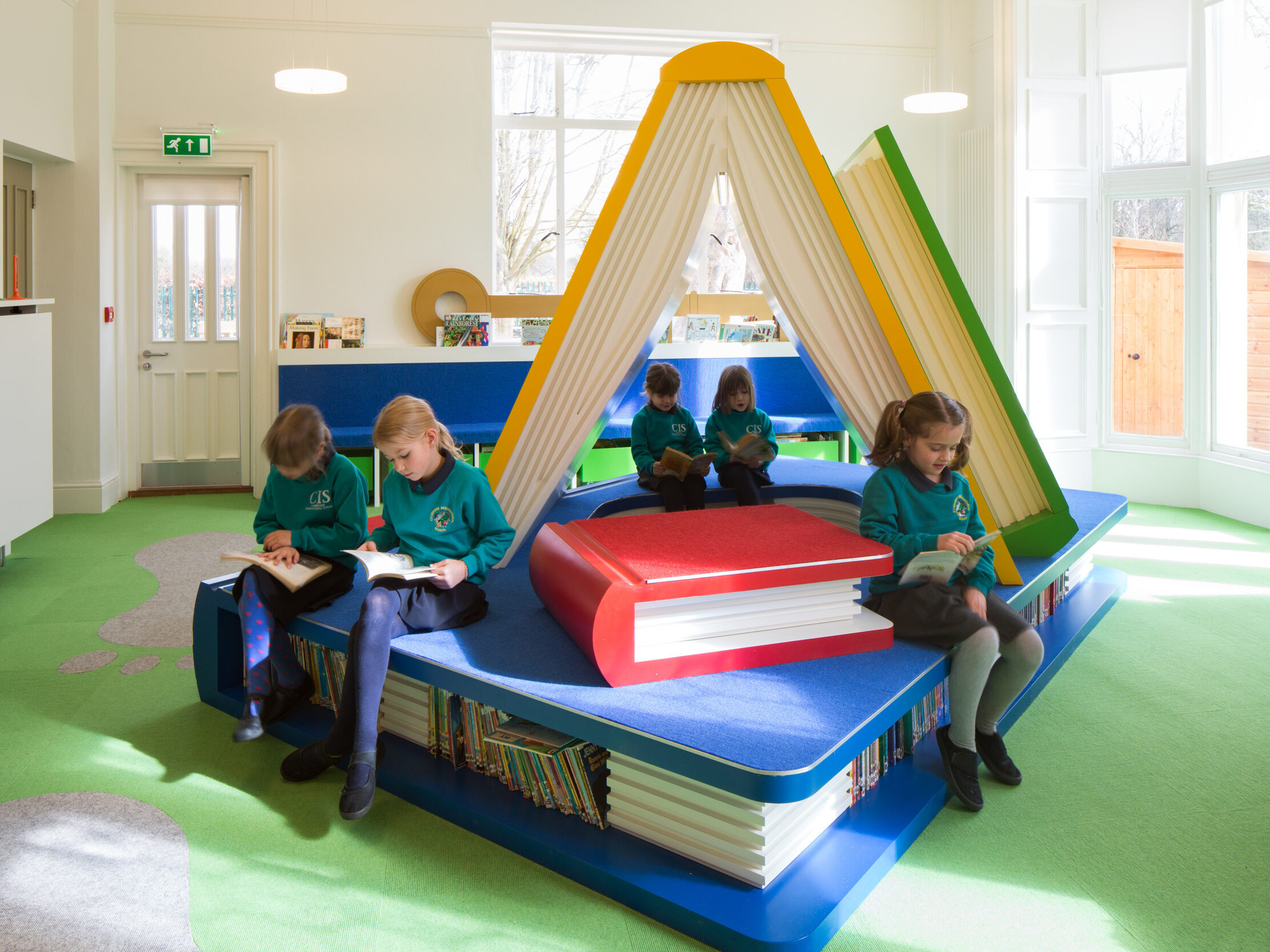 The concept for the library is based on Giants reading room, with giant books and a giants chair. The oversized items create an exciting space for the pupils to enjoy books and stories, with places to sit and display.