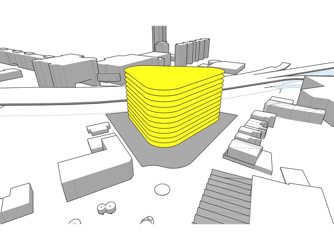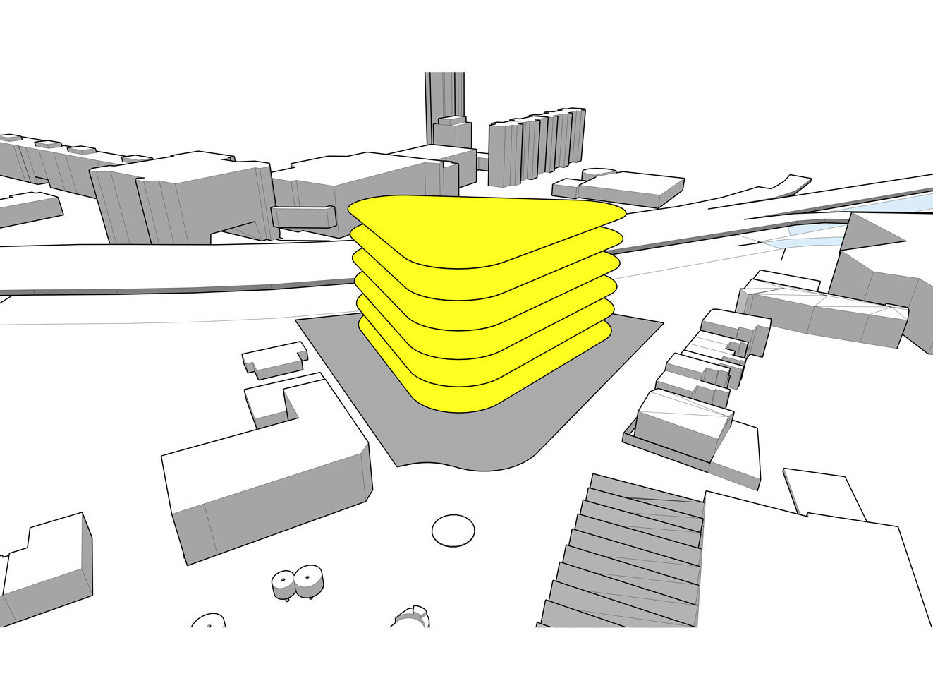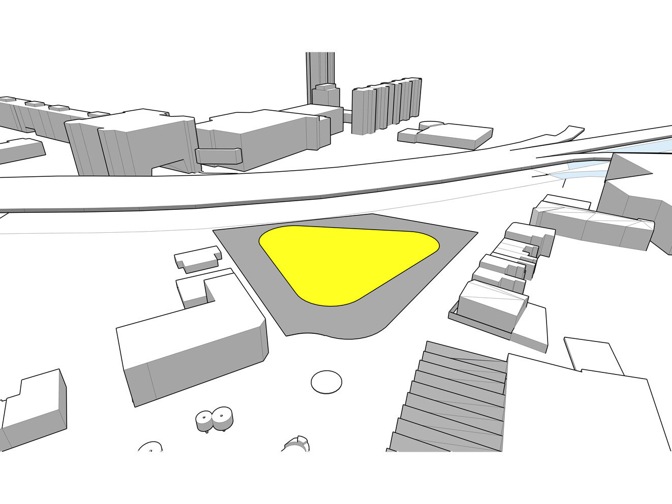 The factory has long since been demolished and during the 1980s and 90s, the site was home to a nightclub (which has also now been demolished). The photograph shows a public WC located on the roundabout adjacent to the site relating to the public house on the corner of Raglan Street and Alma Street. There is precedence in the area of rounded edges to buildings in corner plots, which has been referenced in the ‘fluid’ form of the proposed car park.